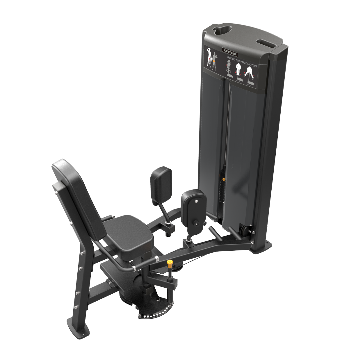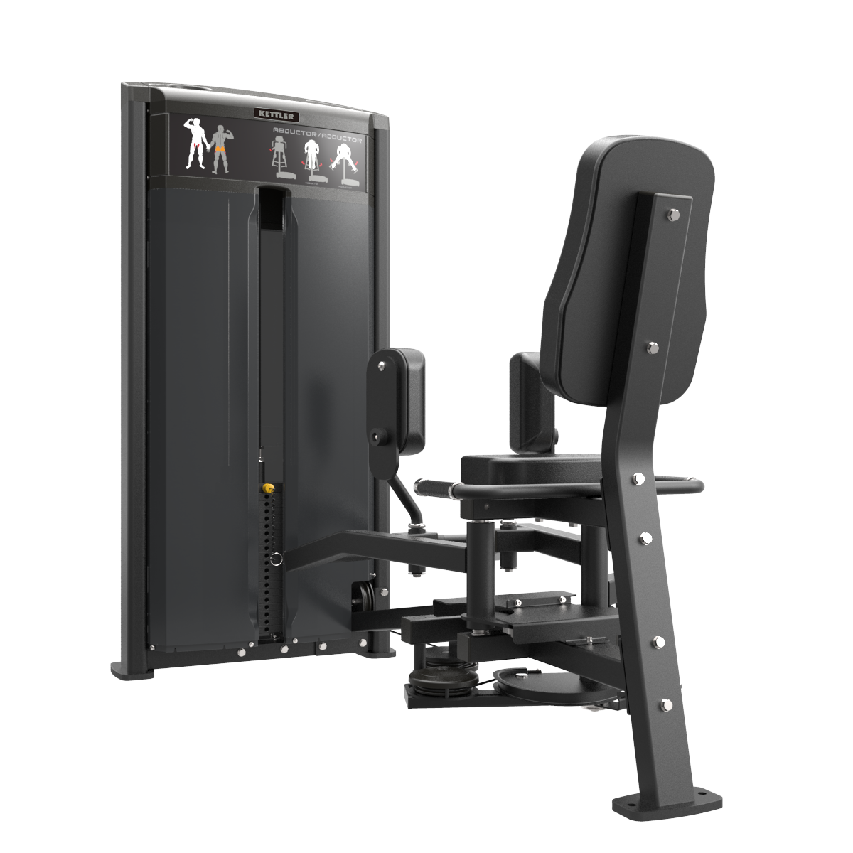 The KETTLER 06300-108 Abductor/Adductor from the EXPERIENCE Series is pin selectorized equipment for mid-level professional use that works the thighs’ adductor and abductor muscles. After selecting the proper weight, the exerciser could efficiently engage both the muscles inside and outside of the thigh by simultaneously adducting or abducting the two sides of the thigh.