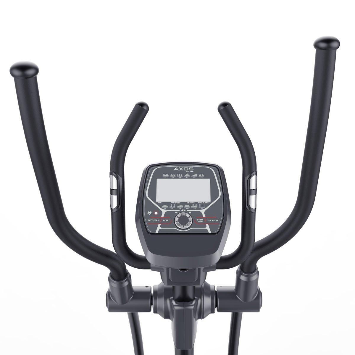 The CROSS 4 from the AXOS SERIES is the KETTLER series’ entry-level elliptical for home use, featuring a computerized version with a motor-controlled magnetic braking system. This workout cycle offers 16 resistance levels, a 9 kg flywheel, and a training computer with 12 programs and 4-person memory. Hand pulse sensors included in the handlebars, as well as an optional ear clip or chest belt, detect your pulse.
