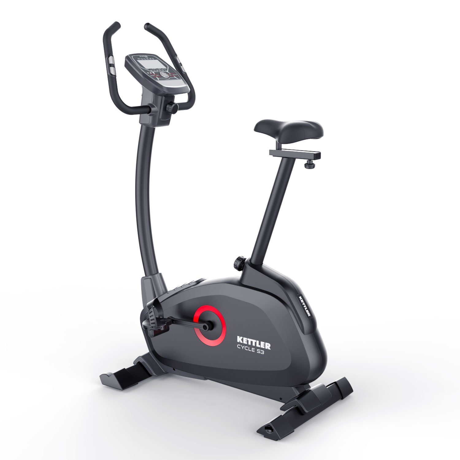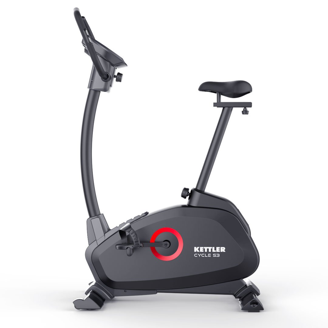The CYCLE S3 from the AXOS SERIES is the entry-level bike in the KETTLER series for home use. The computer-controlled variant features a motorized magnetic brake mechanism. The advantages of this exercise bike include a 16-level resistance adjustment, a 9 kg flywheel system, and a training computer with 12 programs and 4-person memory. Hand pulse sensors in the handlebars, as well as an optional ear clip or chest belt, monitor your pulse. An additional chest belt.