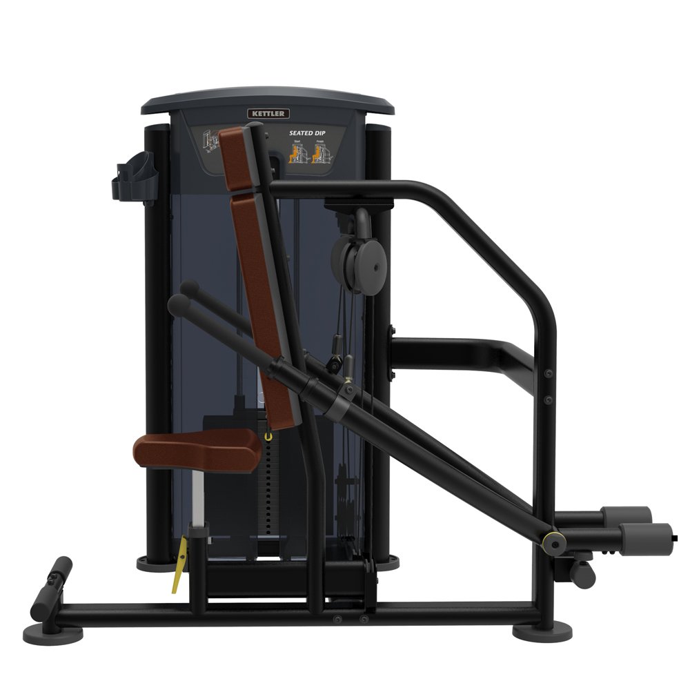 The KETTLER 07950-170 Seated Dip from the EDITION SERIES is designed for high level professional use, The 07950-170 is pin selectorized equipment for mainly working out working out the serratus anterior muscle and the triceps brachii. By simultaneously pushing the actuating arm handles on both sides after selecting the proper weight, the exerciser could efficiently tone the muscles in their upper arms and trunk. Multiple users can be accommodated by rotating handles. Stabilization and comfort are both increased by angled back upholstery. To stabilize the body, foot plates are designed to accommodate a range of users.