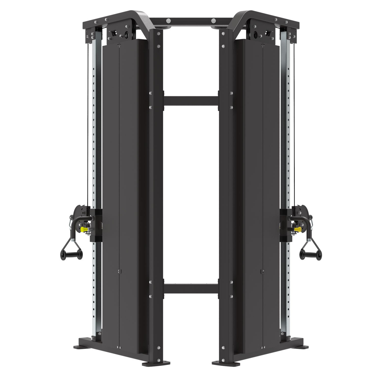 The optional translucent shroud with ABS materials is durable and wear-resistant, while the main plastic parts are injection-molded for steady quality. The entire series has a cage height of 1530mm, creating a bright training environment in fitness clubs. The seats cushion, chest and back pad are ergonomically designed with polymer materials that provide maximum comfort during training. Specially designed pads have different angles to meet various training requirements.