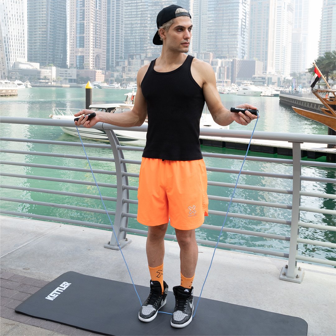 Everyone, from the youngest children to elite athletes, can use the KETTLER Jump Rope Basic. Jumping builds abdominal and chest muscles in addition to the arms and legs. Regular skipping rope training also increases heart activity and enhances body coordination.