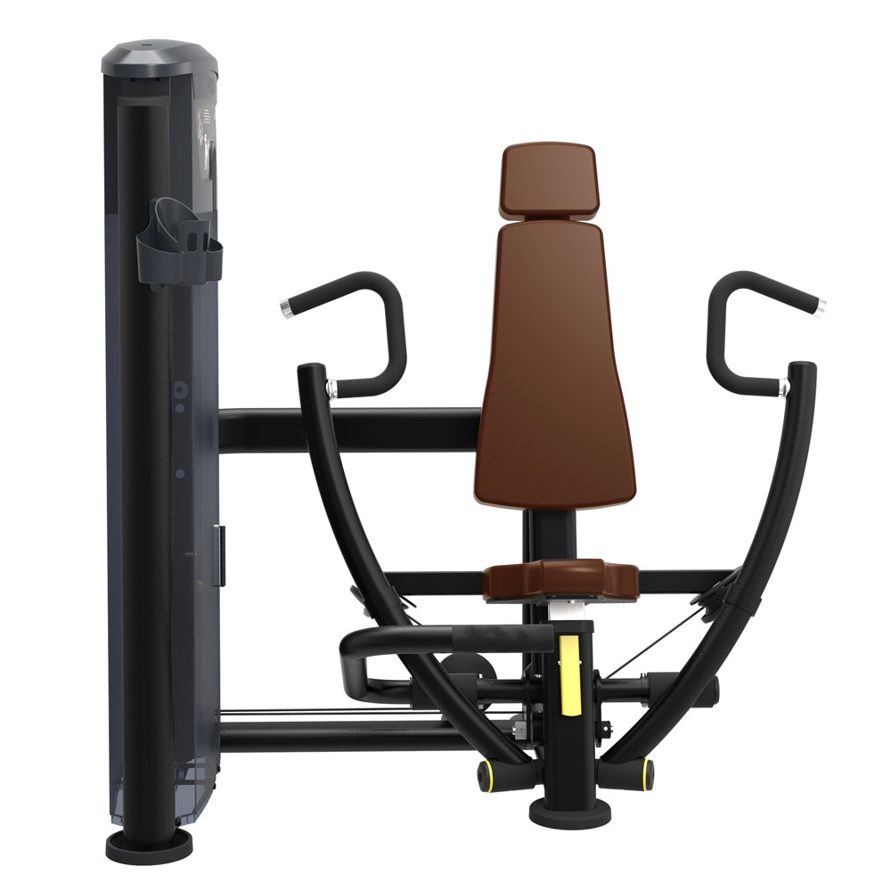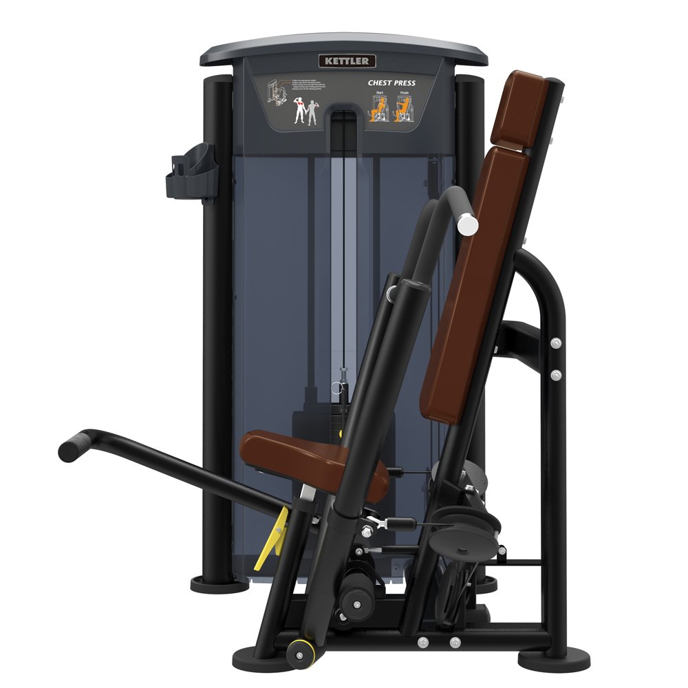 The KETTLER 07950-100 Chest Press from the EDITION SERIES is designed for high level professional use, The 07950-100 is pin selectorized equipment for mainly working out pectoralis major and brachii triceps. By selecting the proper weight, the trainer can efficiently work out the arms and chest by pushing the handle. A more thorough chest workout is facilitated by the convergence press. Users can start and end safely, conveniently, and without risk of injury thanks to the pre-stretch foot. Multiple positions for varying exercises are provided by the dual-handle.