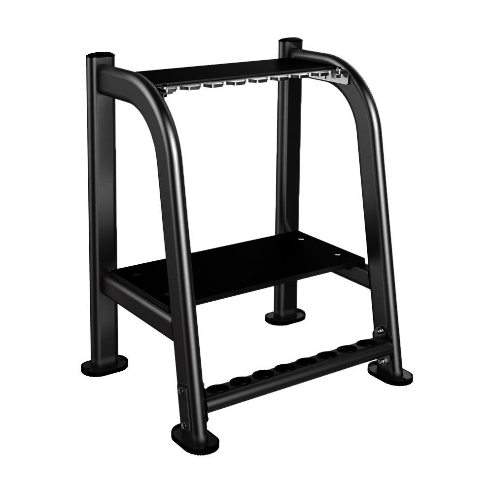 The KETTLER 07970-432 Olympic Bar Rack from the EDITION SERIES is designed for high level professional use, The 07970-432 barbell storage rack is a tool storage rack designed to hold small tools like medicine balls and kettlebells. Standard Olympic barbell bars can be placed in the vertical storage design, significantly increasing the amount of space that can be used. In order to avoid scuffing into the main frame, the barbell placement hole is covered with rubber and treated to withstand wear. Additionally, the placement of the barbell is slightly angled, making it easier to pick and place. It also has a two-tier storage table where you can simultaneously store kettlebells, barbells, and other.