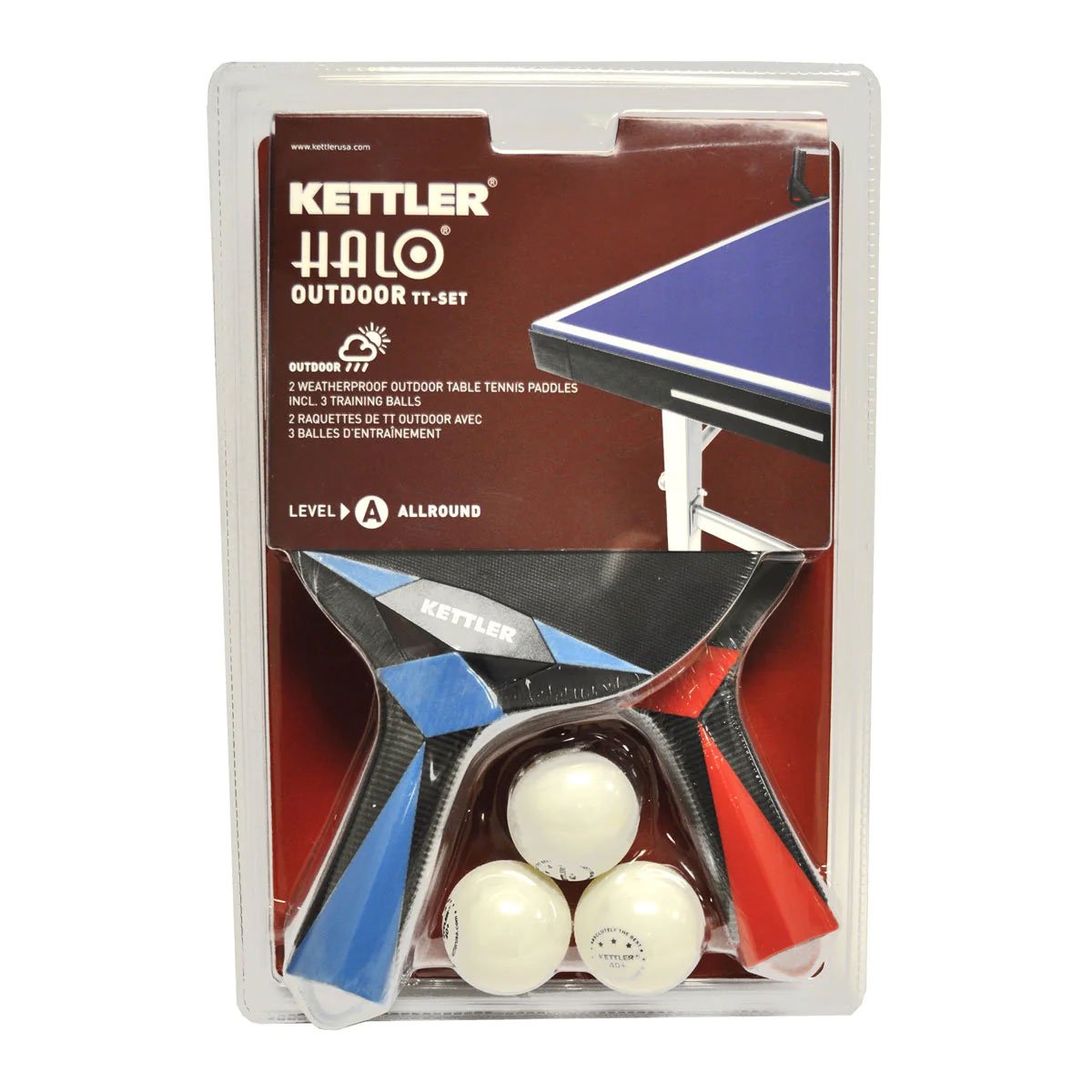 With its high impact resin construction that provides exceptional durability and weather resistance, the KETTLER 2 HALO Outdoor is an absolutely weatherproof racket. Players have increased control and speed for power strokes thanks to the lightweight design and structured synthetic rubber blade of the Air Channel High Performance Core Infused Smooth Rubber Surface. The ergonomically designed concave handle is very comfortable to use.