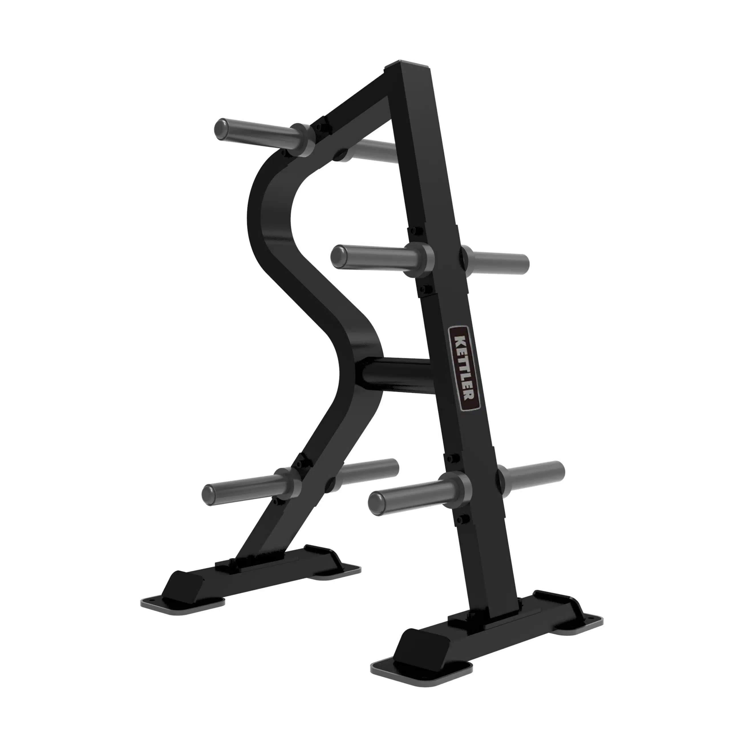The KETTLER 07870-110 Plate Rack from the EDITION COMFORT SERIES is designed for Extremely High Professional use, The 07870-110 is made of extremely large tubing and used as storage equipment for barbells. To guarantee the equipment’s durability, each part is put through several processes. The bottom has four legs for support and is fitted with rubber floor pads to improve traction and area of contact with the earth. There won’t be any tipping when the upper hanging angle is fully loaded with barbells, significantly increasing safety.