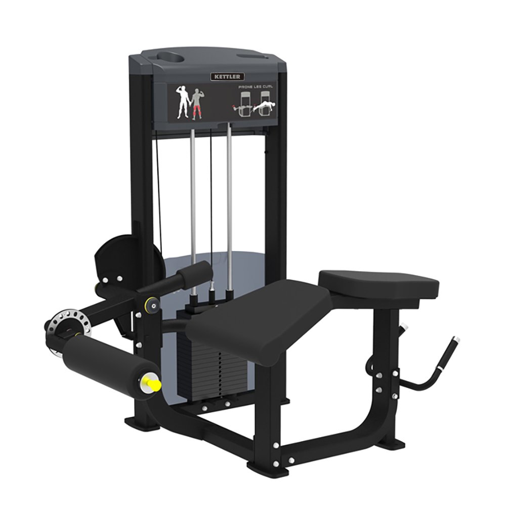 The KETTLER 06300-121 Prone Leg Press from the EXPERIENCE Series is designed for mid-level professional use, allowing users to trains calf muscles, triceps and adductor. User selects an appropriate weight and adjusts roller pad to a suitable position, then curling legs to train leg muscles effectively. Tilted arm cushion and hip pad are shaped to support spinal column, and help user to keep the hip stability in a seated position. Adjustable starting position meets the demands of different users. Yellow circle pivot helps to assume the correct position during workout.